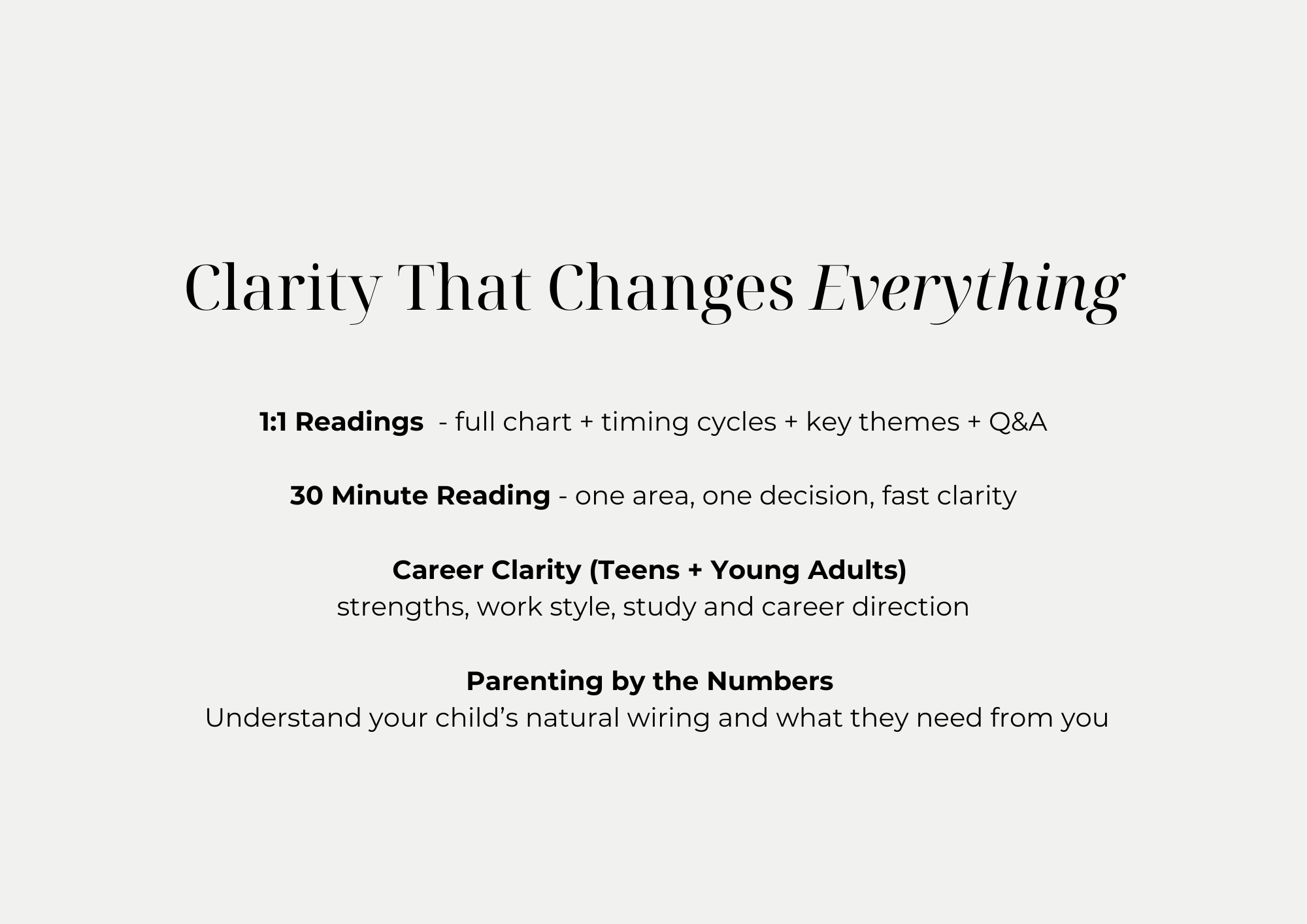 “Your Numerology reading was life-changing for me - to finally understand my chart and talents and where I can go in life.”